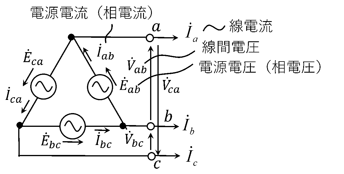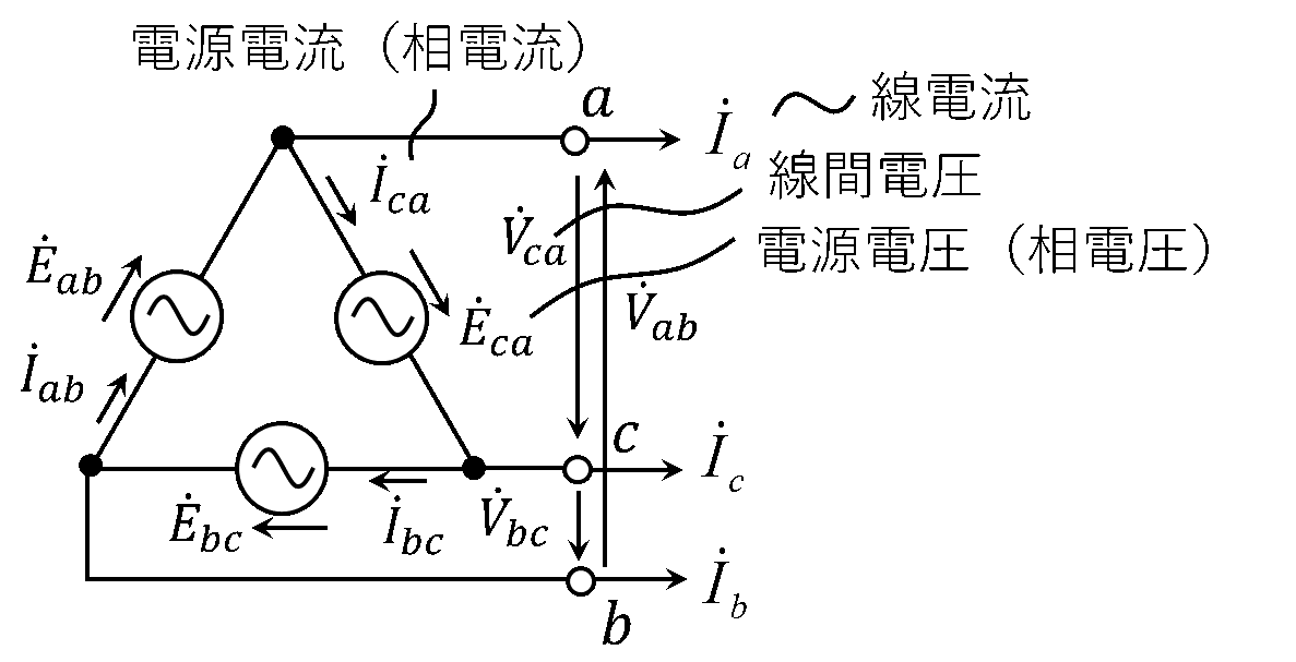 第2図 Δ結線三相電源(相順abc)