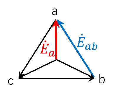 これより電源Y-負荷Yに対する線電流を、\(\dot{E}_{ab}\)を基準ベクトルとして求める。