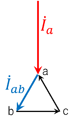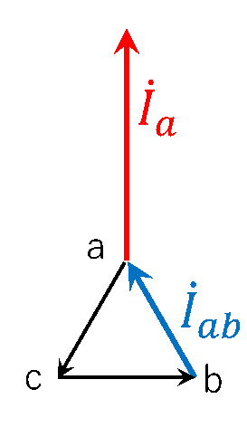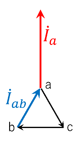 第12図 Δ結線\(\dot{I}_{ab}\)とY結線\(\dot{I}_a\)の簡易的な負荷電流ベクトル変換図