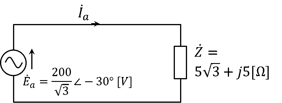 インピーダンスは\(\dot{Z}=5\sqrt{3}+j5=10\angle30°\) [Ω] なので、