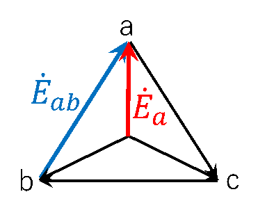 第17図 Δ結線\(\dot{E}_{ab}\)とY結線\(\dot{E}_a\)の簡易的な電源電圧ベクトル変換図