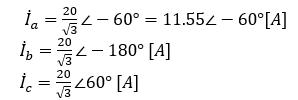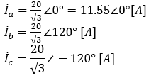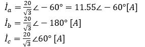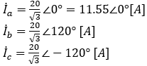 となる。電流の大きさは相順abcの場合と同じであるが、位相が異なってくる。