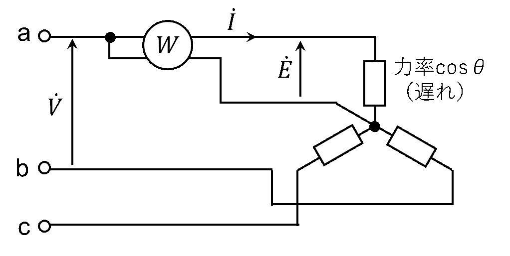 この定理には、重要な前提条件として、「任意の一線を基準相とした(n-1)個の電力計」がある。第1図は、この条件を考慮して電力計を接続している。