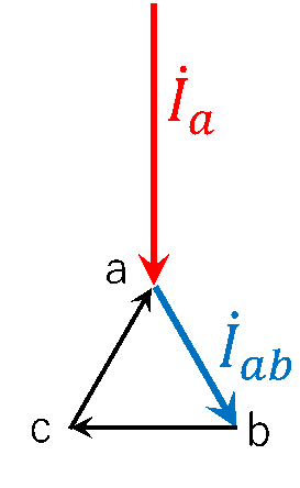第12図 Δ結線\(\dot{I}_{ab}\)とY結線\(\dot{I}_a\)の簡易的な負荷電流ベクトル変換図